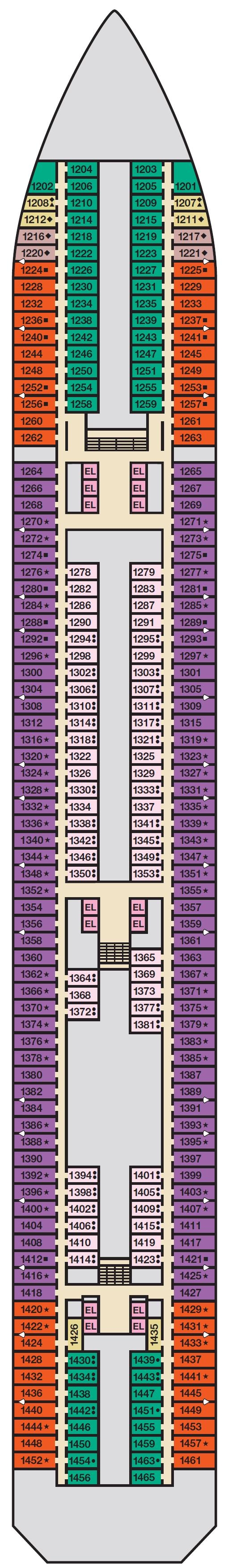 | Dekken: | Empress Deck, Lido Deck, Upper Deck, Panorama Deck | |