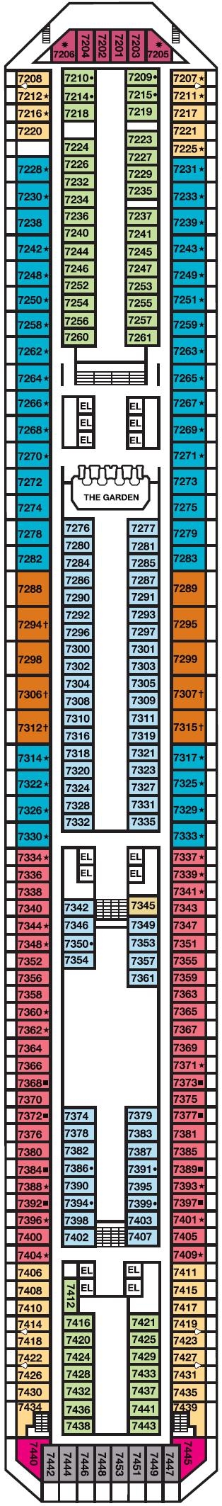 | Dekken: | Upper Deck, Empress Deck, Lido Deck, Panorama Deck | |