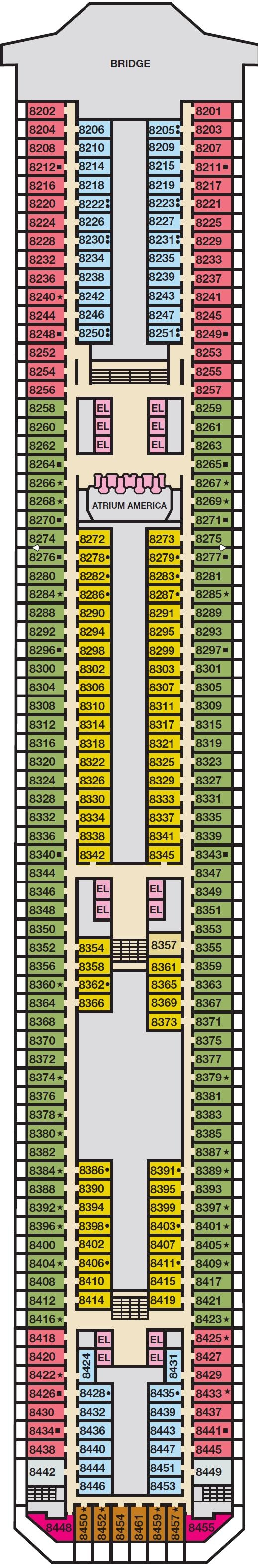 | Dekken: | Panorama Deck, Spa dek | |