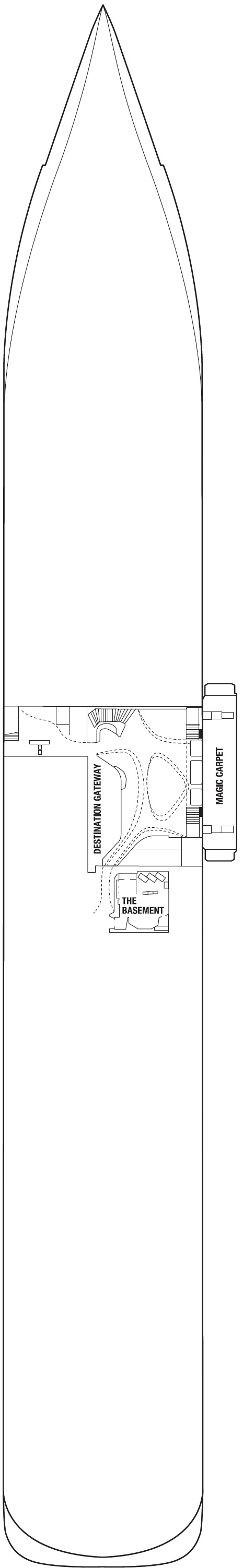 Het Magic Carpet is een uniek oranje platform ter grootte van een tennisbaan, dat verticaal langs de zijkant van het schip beweegt. De 'gigantische lift' stopt op wel 4 verdiepingen. Op de hoogste verdieping bevindt zich een specialiteitenrestaurant, op dek 14 dient het Magic Carpet als een uitbreiding van het zonnedek en zwembad en op dek 5 vormt het een buiten dineer-optie bij restaurant Destination Gateway.