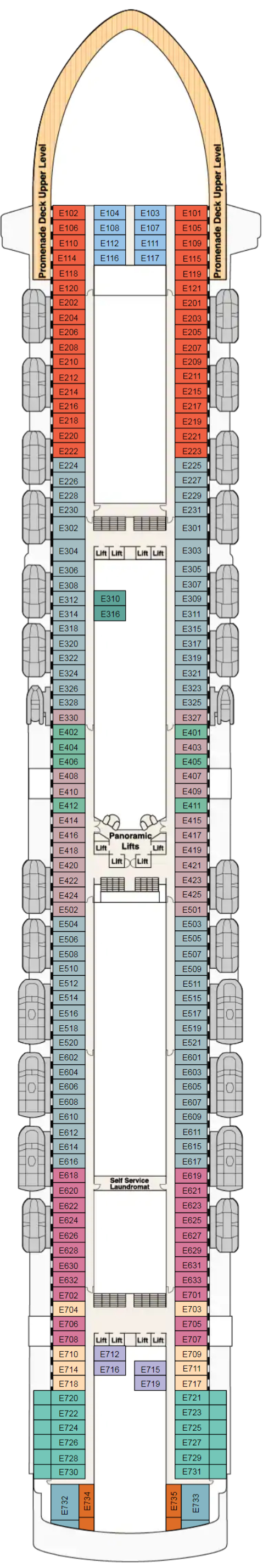 | Dekken: | Deck 5 - Plaza, Deck 15 - Lido, Deck 8 - Emerald, Deck 14 - Riviera | |