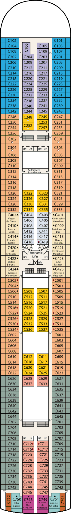 | Dekken: | Deck 8 - Emerald, Deck 9 - Dolphin, Caribe dek, Deck 11 - Baja, Deck 12 - Aloha | |