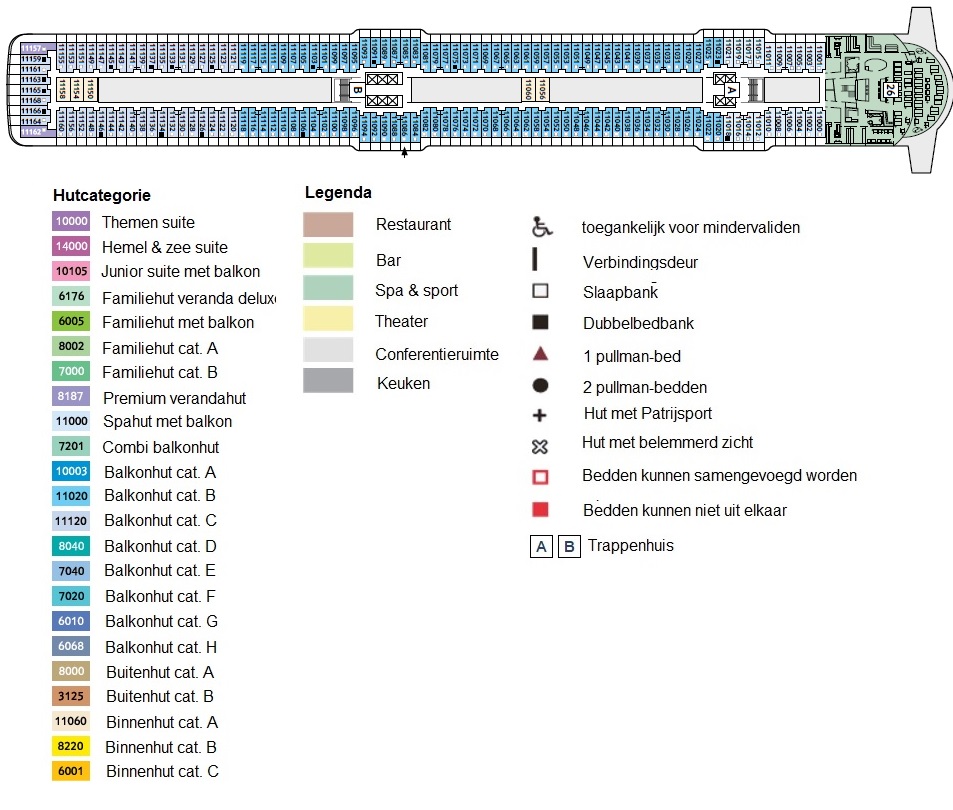 | Dekken: | Dek 9 Koraal, Dek 7 Hanze |