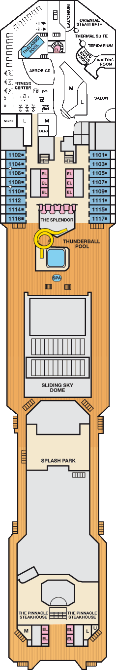 | Dekken: | Main dek, Riviera dek | |