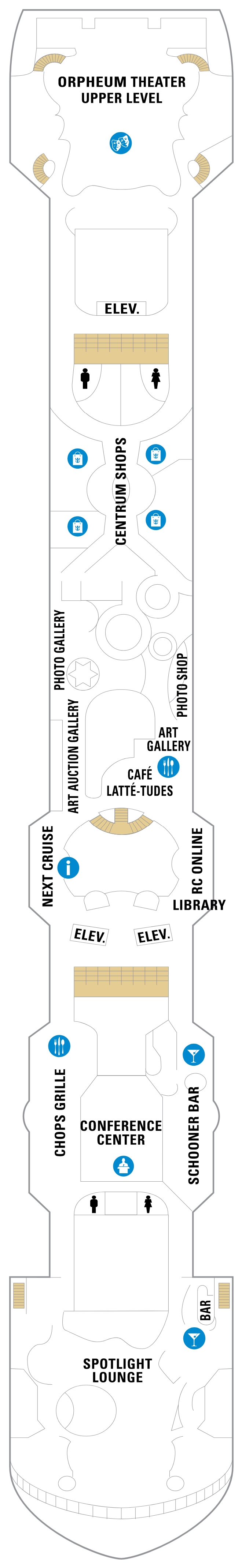 - Internet café met Royal Caribbean Online, wat u de mogelijkheid biedt ecards naar uw familie te mailen.
