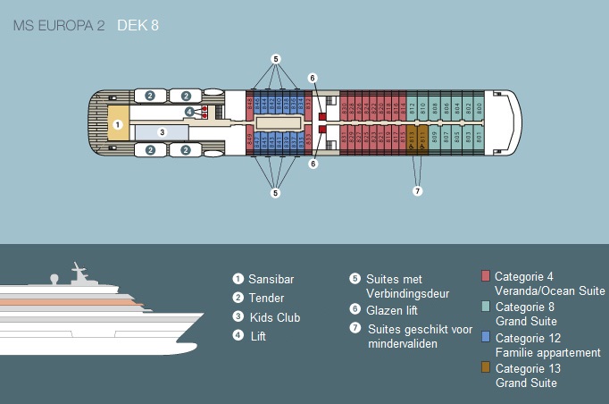 | Aantal dekken: | 8 | Specialiteiten- restaurants: |