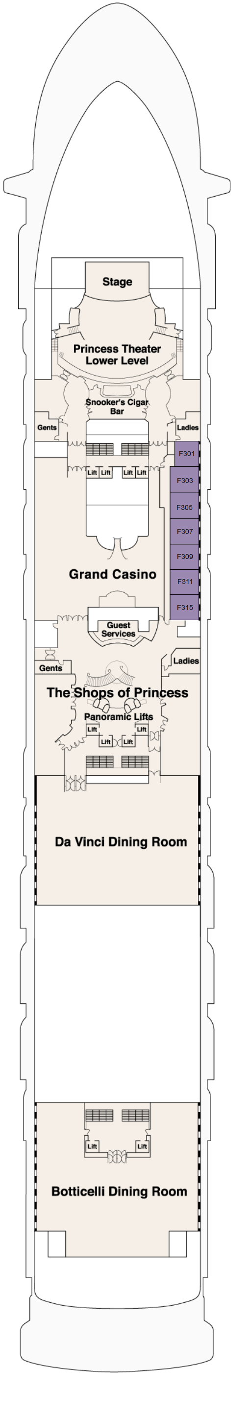 | Dekken: | Deck 5 - Plaza, Deck 8 - Emerald, Deck 12 - Aloha, Deck 14 - Lido | |