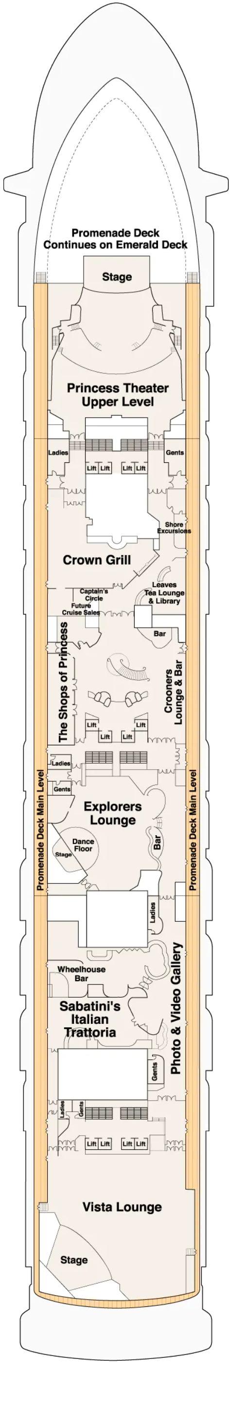 | Dekken: | Deck 8 - Emerald, Deck 12 - Aloha, Deck 14 - Lido | |